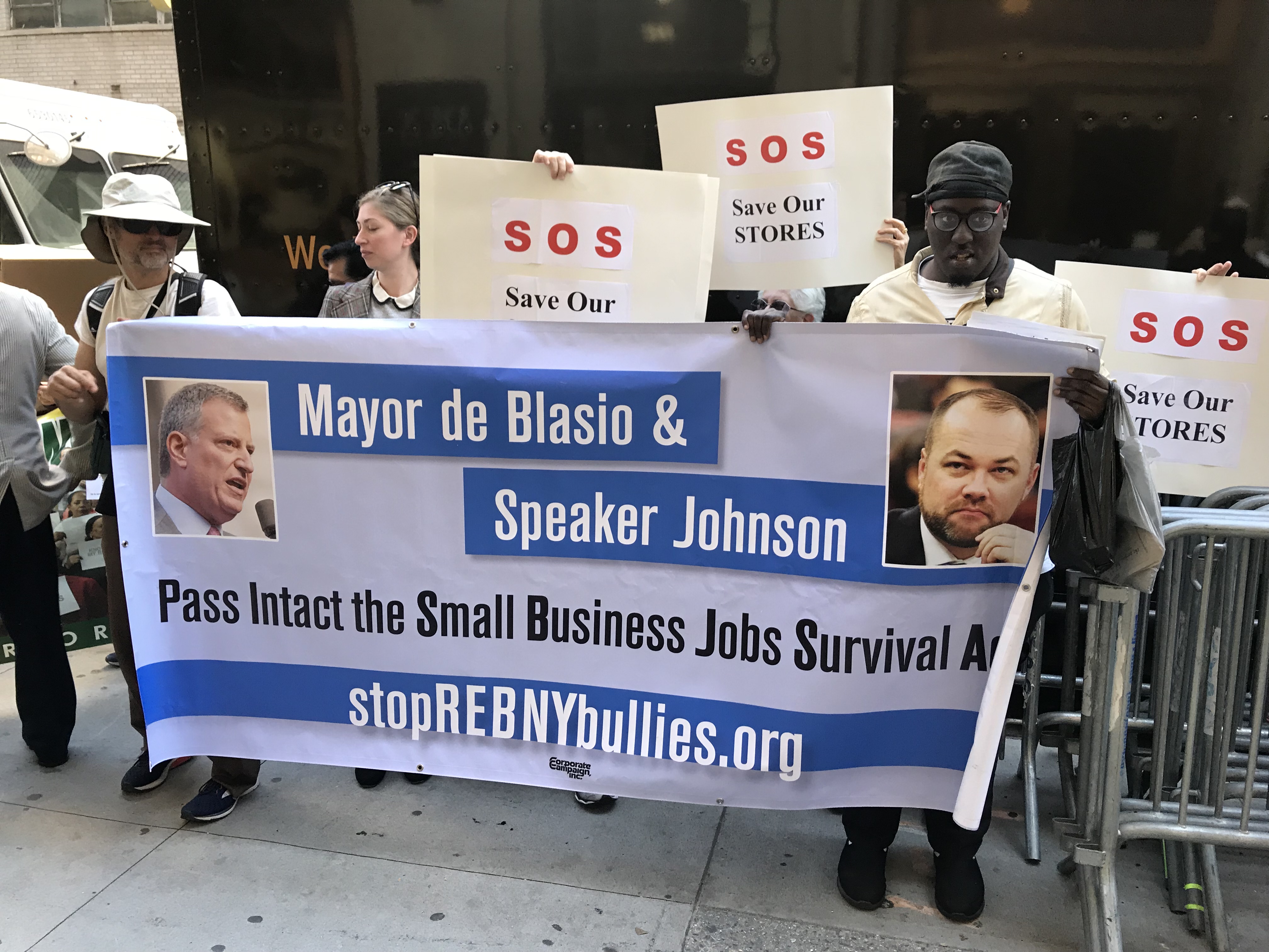 "None of those 'will save a single small business owner or a single job,' Ray Rogers, head of the Campaign to Stop REBNY Bullies, said at the rally.