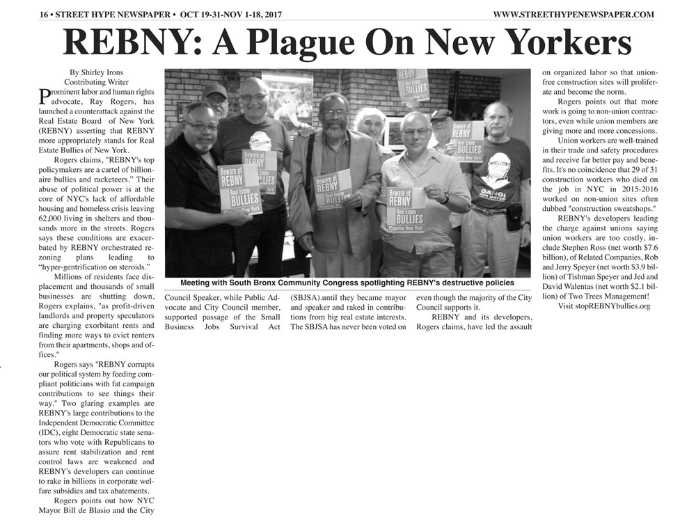 Ray Rogers discusses the Campaign to Stop REBNY Bullies on WBAI (9-12-2017).