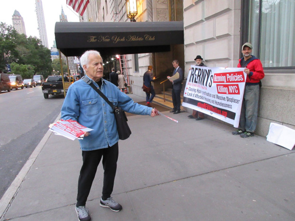 Labor activist Ray Rogers hands out literature at a Campaign to Stop REBNY Bullies protest last year.